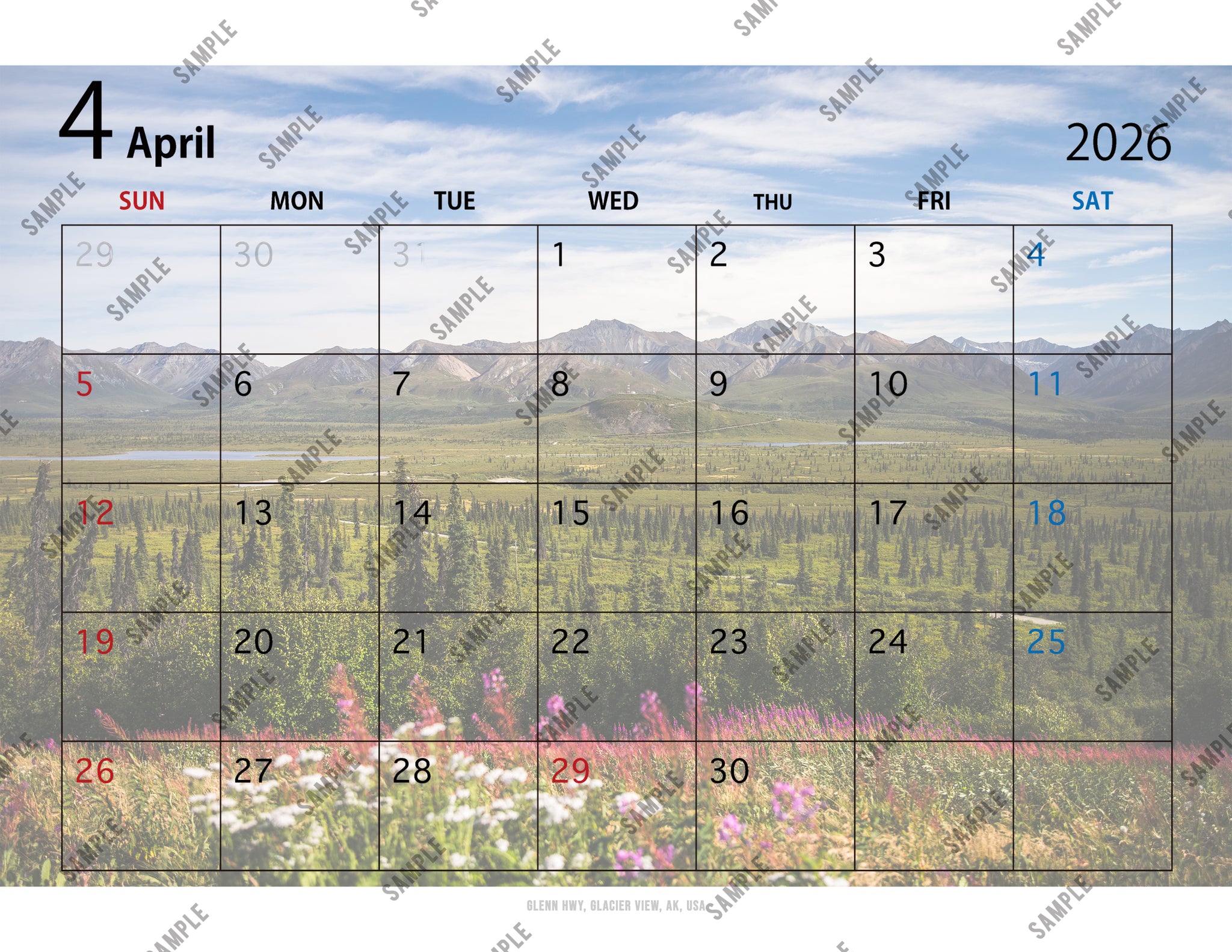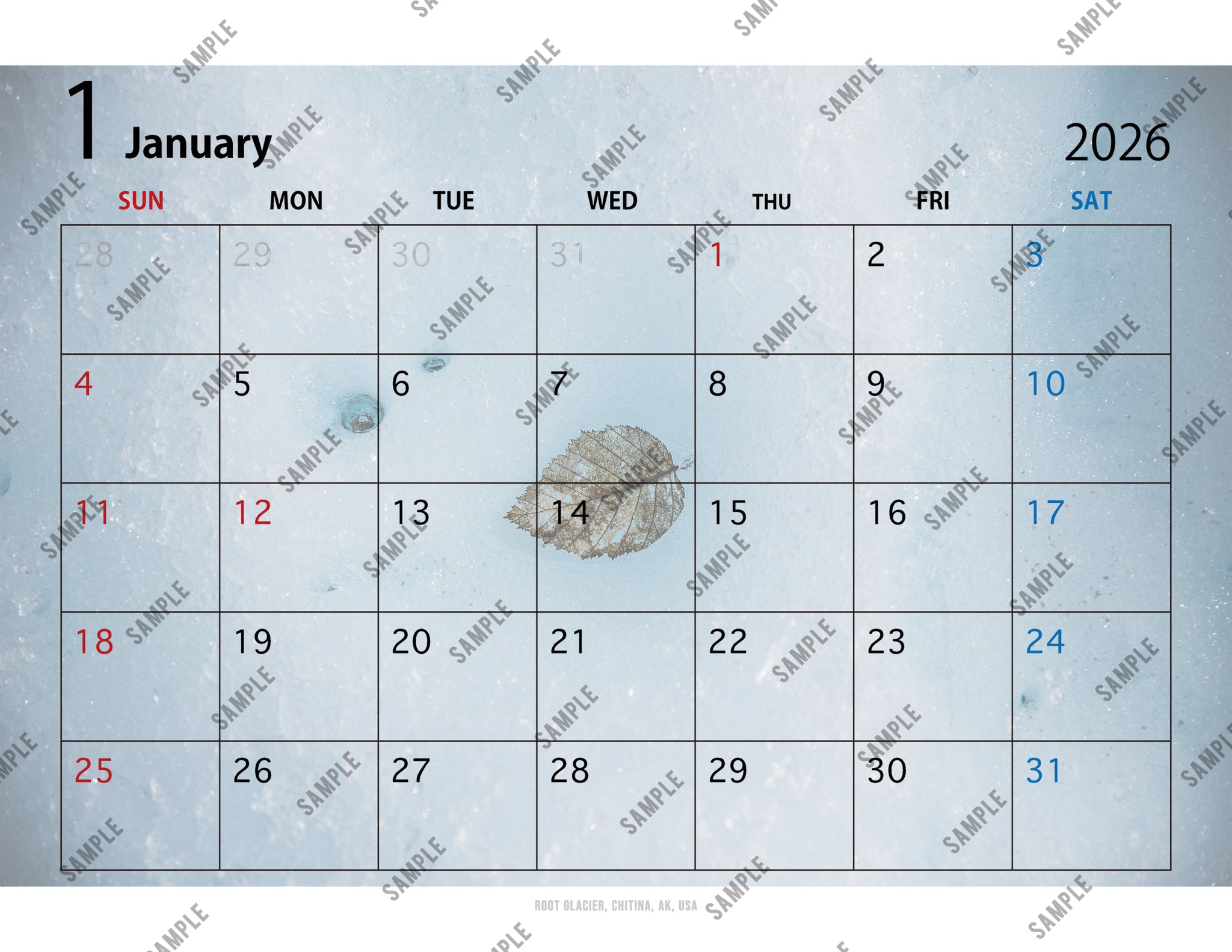 Monthly Calendar for year 2026, featuring 26 stunning photos with location information (aside from cover page) of my travels through the past years as backgrounds.